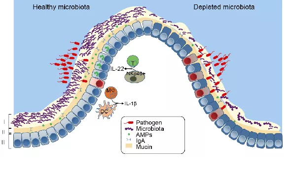 優(yōu)質(zhì)生物發(fā)酵飼料中β-葡聚糖、甘露寡糖、小肽、氨基酸、維生素、細(xì)菌素等代謝產(chǎn)物具有固筑口鼻黏膜屏障,增強(qiáng)黏膜免疫功能;具有激化單核細(xì)胞,提高免疫屏障功能和健康水平,提高堵截病原微生物侵入機(jī)體的能力。
