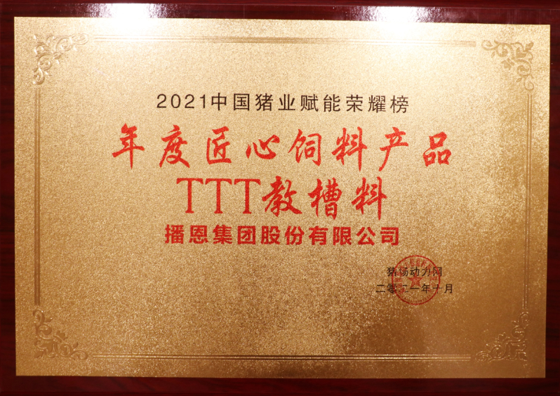 匠心產(chǎn)品的打造是一個(gè)漫長(zhǎng)的過(guò)程,播恩始終不忘初心的質(zhì)量堅(jiān)守,精益求精的匠心鍛造,推行高品質(zhì)產(chǎn)品和服務(wù)。此次榮膺“2021年度匠心飼料產(chǎn)品”獎(jiǎng)項(xiàng),不僅反映了行業(yè)與廣大客戶對(duì)產(chǎn)品價(jià)值的認(rèn)可,也是公司持續(xù)專注技術(shù)研發(fā)、提升產(chǎn)品價(jià)值的結(jié)果。這也是繼2017年播恩TTT教槽料首次獲評(píng)“教保類匠心產(chǎn)品”后,再次獲得此項(xiàng)殊榮。