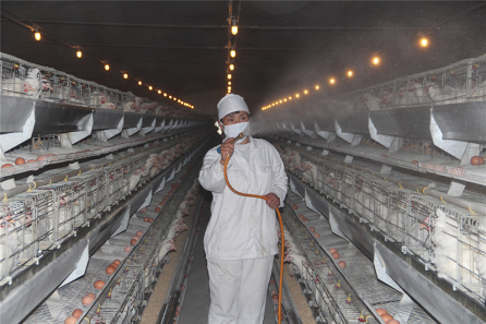 由于冬春交替時(shí)節(jié)天氣仍舊寒冷,畜禽圈舍常常處于封閉狀態(tài),空氣流通性比較差,加之圈舍內(nèi)部陰暗、潮濕、寒冷,因此極易引發(fā)呼吸道傳染病,所以,防止疫病發(fā)生至關(guān)重要。要定期對(duì)畜舍進(jìn)行消毒,保證飼養(yǎng)環(huán)境的清潔衛(wèi)生。推薦每周用過(guò)氧乙酸、播恩酸化劑、百毒殺、或者戊二醛對(duì)圈舍消毒一次,消毒劑應(yīng)該交替使用,避免病原菌和病毒對(duì)消毒劑產(chǎn)生耐藥性。每次清理料槽后,使用聚維酮碘對(duì)料槽進(jìn)行消毒。此外為了避免因?yàn)槿说脑驅(qū)е录倚笊?,工作人員每次進(jìn)出畜舍之前,都要到消毒間進(jìn)行消毒,消毒間內(nèi)設(shè)超聲波霧化消毒系統(tǒng),消毒間外以及圈舍外部地面鋪設(shè)生石灰。要經(jīng)常觀察家畜的精神狀態(tài)、食欲、糞便等情況,及時(shí)發(fā)現(xiàn)疫情,及時(shí)治病。