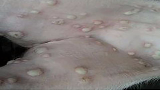 14、蹄、唇、母豬乳房部起水泡