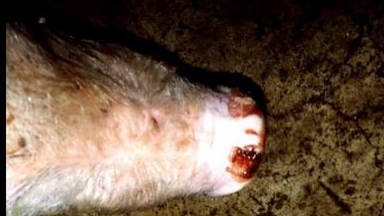 9、豬耳朵發(fā)紅發(fā)紫或壞死