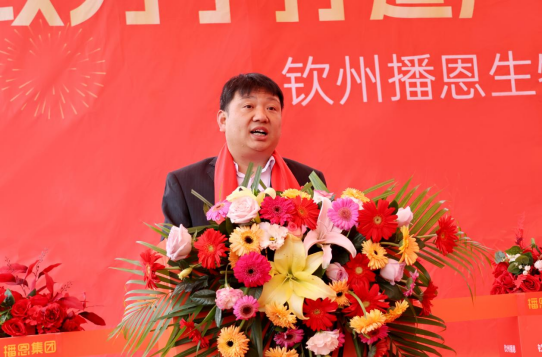 欽北區(qū)副區(qū)長黃如龍,廣西飼料工業(yè)協(xié)會會長、廣西大學(xué)教授沈水寶博士,播恩集團廣西特區(qū)總經(jīng)理曾紹鵬,欽州工廠總經(jīng)理楊春,分別做了致辭。