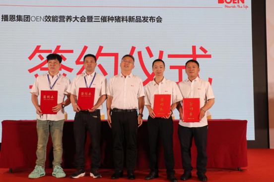 緊接著佛山工廠區(qū)曾慶昌總監(jiān)的主持下,曹總與宣威永和總經(jīng)理李家嚴(yán)、華昕集團(tuán)董事長徐桂林、福安市博成飼料經(jīng)營部總經(jīng)理薛光平、新羅區(qū)鑫農(nóng)飼料經(jīng)營部總經(jīng)理俞石金舉行了簽約儀式。場內(nèi)一片歡騰,積極下單的客戶絡(luò)繹不絕,顯示出對新產(chǎn)品的高度認(rèn)可和期待。